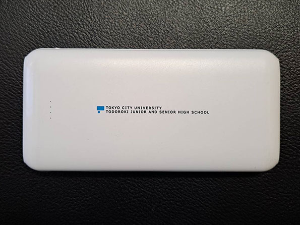 中学校修了式にて保護者の会より卒業記念品としてモバイルバッテリー ほかを贈らせていただきました。